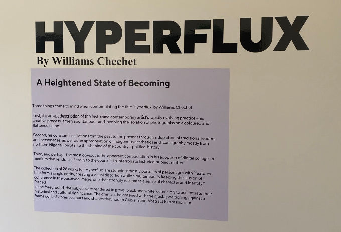 Hyperflux by Williams Chechet is a solo exhibition which explores the intimacy of the African identity. With individual portraits of black and white intricately created art, the pop of colour truly gives a shock factor which your senses cannot comprehend. And that is the beauty of this exhibition.